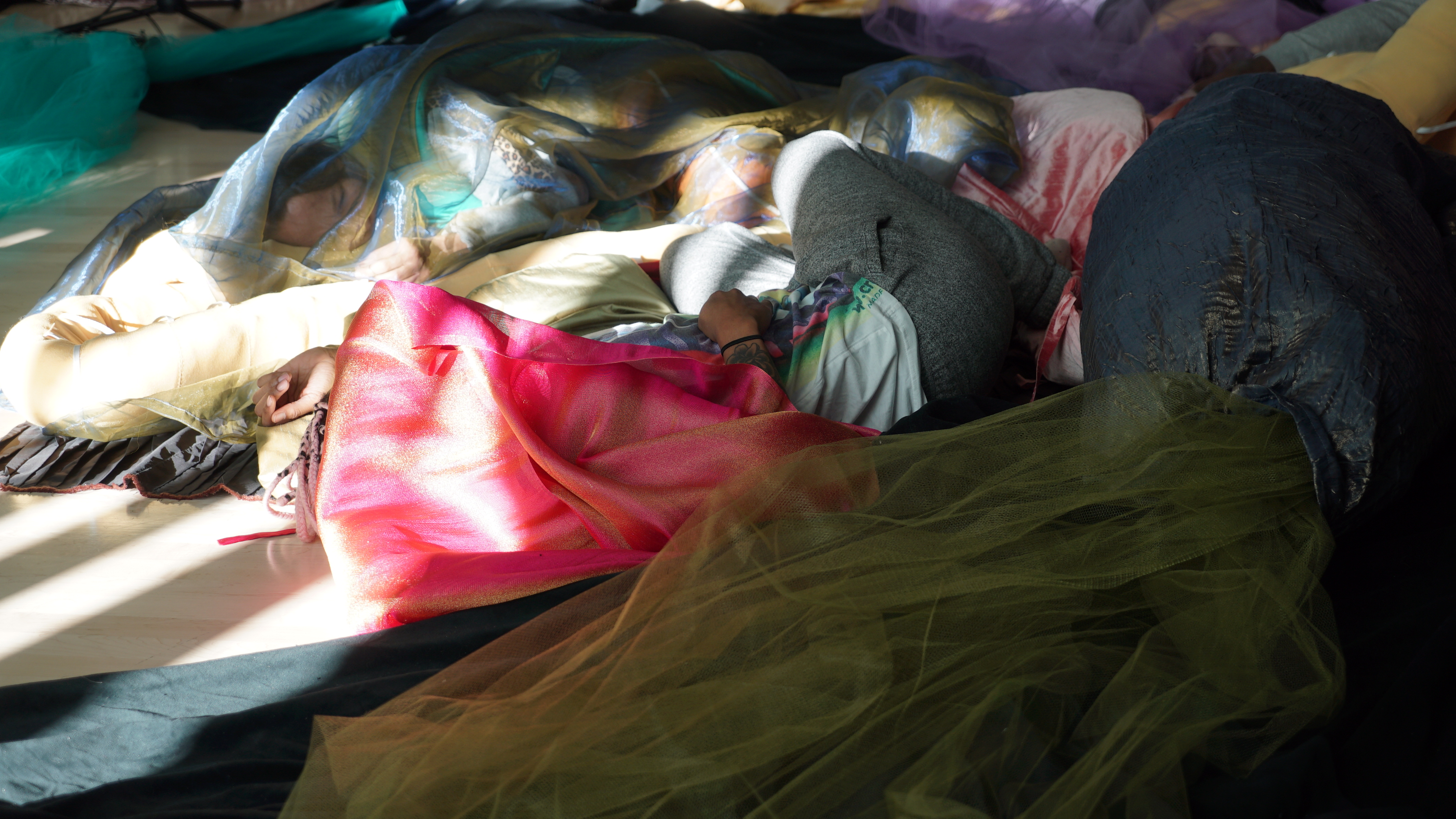 A sounding–a call or a cry–that announces a new form of collectivity, a future assembly of bodies. The project considers foundational dance techniques of lifting, carrying and weight-sharing as manifestations of care and empathy - as forms of feminized labour. The project explored gestures of caressing, holding, cradling and entwining as collective and emergent forms. Conjuring a radical and unapologetic feminine splendour this research delves into a relational and entangled imaginary where landscape, bodies and wearables create complex resistances to dominant modes of seeing and being to make way for new shared embodiments.